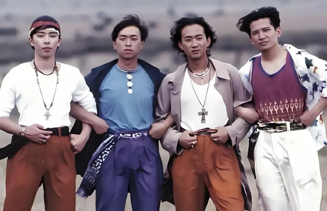 Beyond这支摇滚乐队成员,留着桀骜不驯的长发,穿着个性的皮裤显得格格不入。