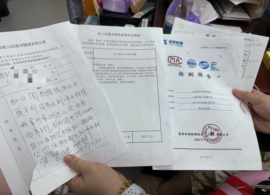馆方立即请了两家第三方机构做了水质检测,很快意见簿上贴出了数据翔实的检测报告,证明水质合格。