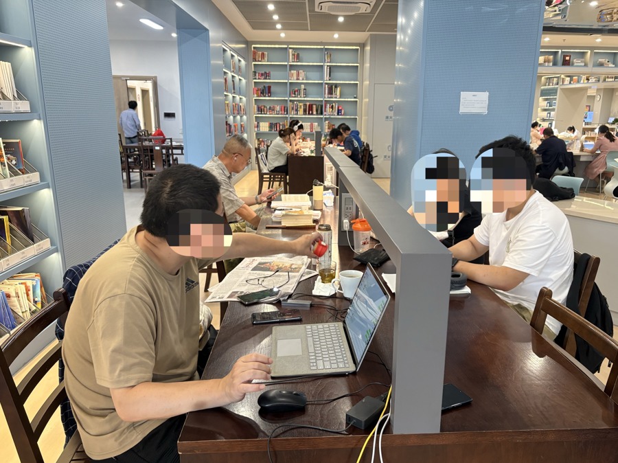 最初王贤决定忍受噪音。他的策略是坐在熟人边上,比如一位长者常来图书馆安静练字,这是他固定的看书搭子。